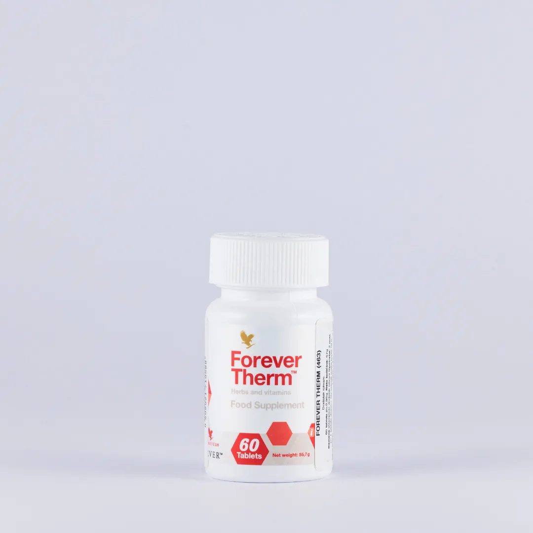 Forever Therm je dodatak ishrani sa vitaminom C, vitaminima B grupe i ekstraktima lista zelenog čaja, semena guarane i zrna zelene kafe namenjen osobama na režimu za mršavljenje. Vitamini C, B1, B2, B6, B12, niacin i pantotenska kiselina, doprinose održavanju normalnog energetskog metabolizma. Pakovanje sadrži 60 tableta.